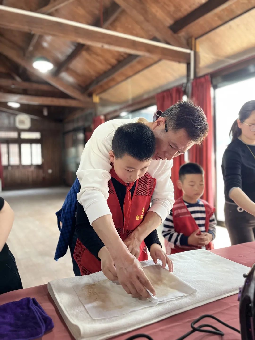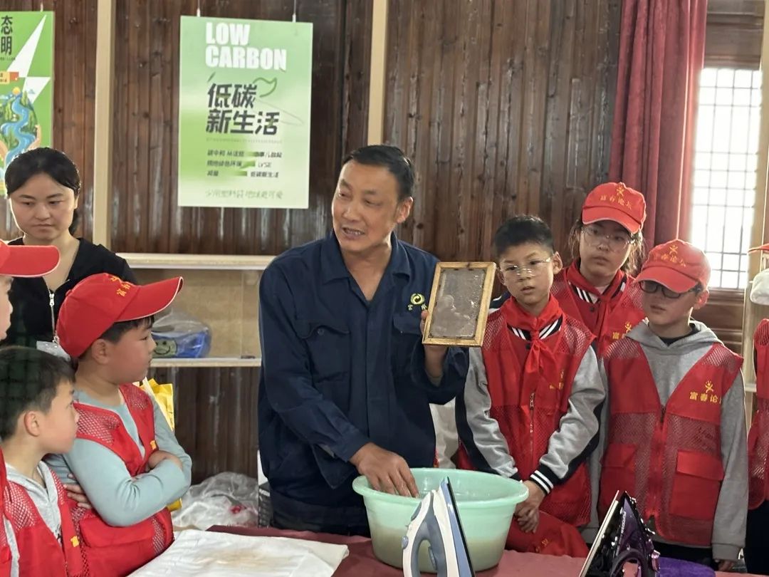體驗用牛奶盒中提煉出來的紙漿親手制作一張具有紀念價值的再生紙。在秦老師的指導下,小志愿者們一個個都順利的制作出了一張完整的再生紙。并在紙上進行了創作繪畫