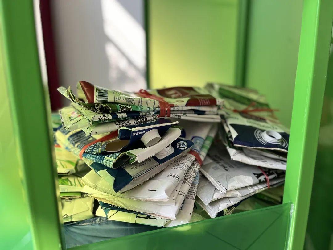 早上九點,小志愿者們及家長們陸續來到富倫,他們還帶來了“門票”——牛奶盒,他們將自己平時喝完的牛奶紙盒清洗,晾干,壓扁并折疊整齊后帶到富倫,帶著這個特殊的門票,體驗如何資源再生,變廢為寶的旅程。用這種獨特的研學方式,讓環保的理念深種。